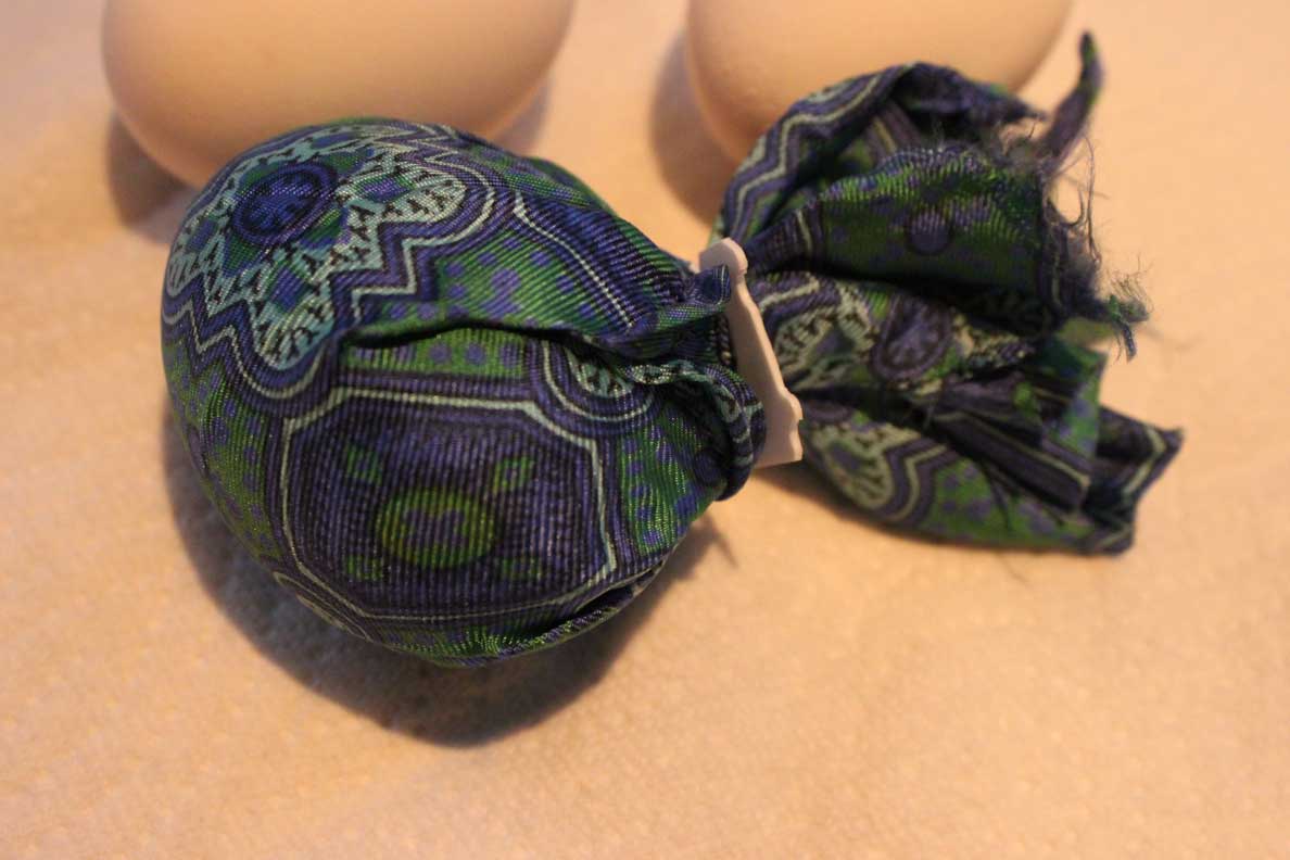 The easiest tool at-hand for securing the silks turned out to be bread tabs.