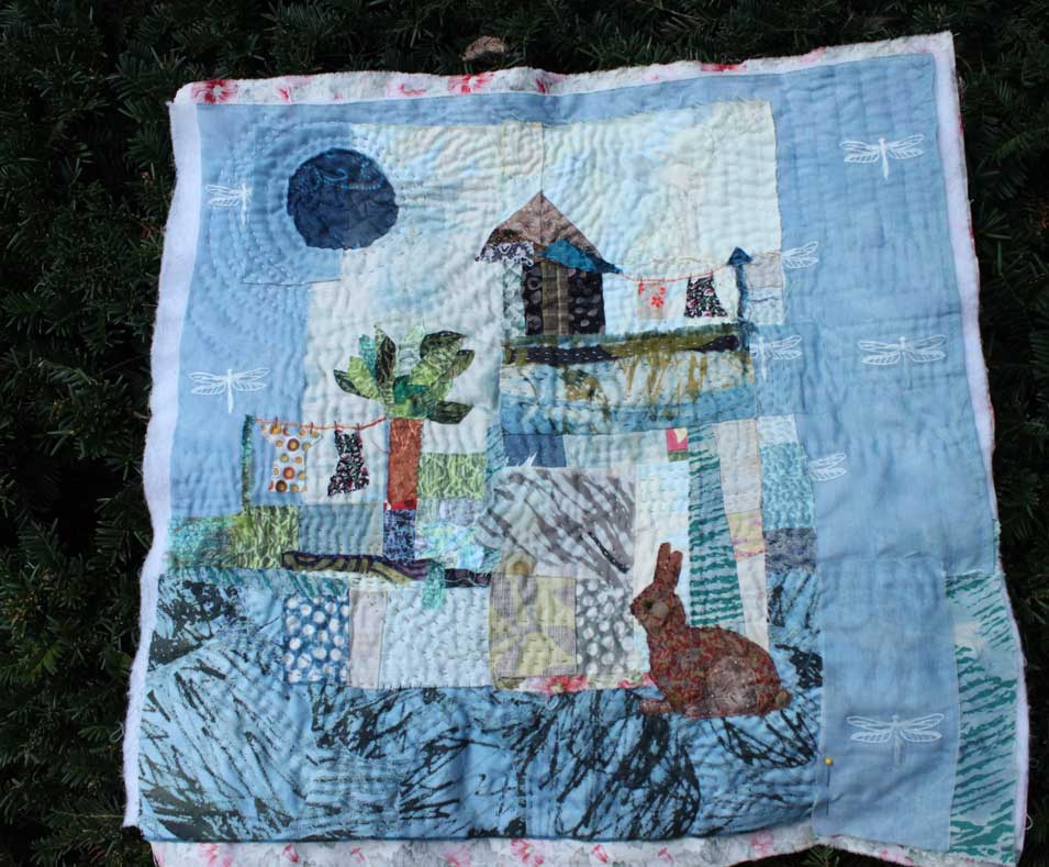 A cute bunny added to an otherwise unpopulated piece ought to inspire something besides my own sense of being derivative. I may just have to give her time. And what about the dragonflies, you ask?!