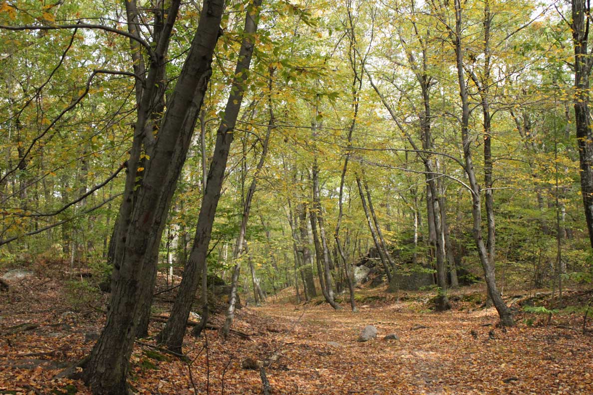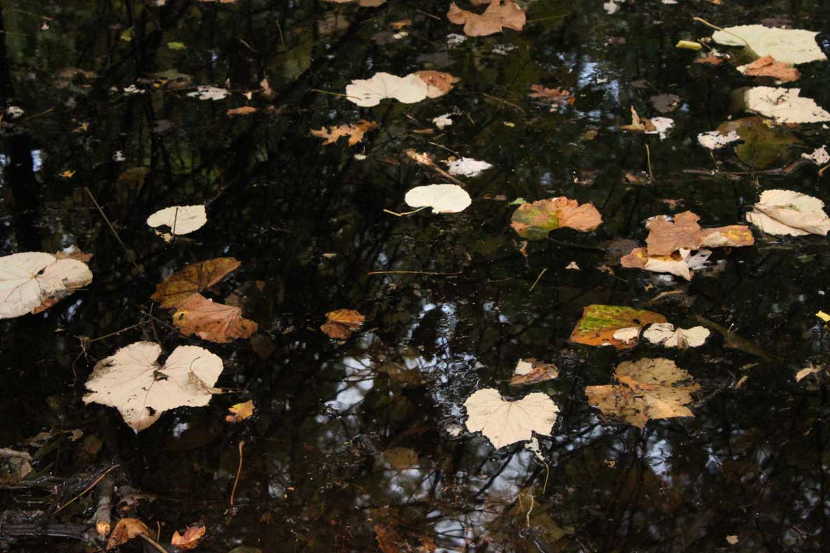 I found a path leading into the woods, and followed it. Through twists and turns, past leaves, branches, and rocks, I lost my way. I paused to take pictures. Destruction from a recent storm caught my eye, as did an inky dark pool with its aura of bottomlessness. At some point, red markers, striped on trees, signaled the direction. I followed. Red stripes. Then, suddenly, sky – a teeny triangle of it – appears. Taking off my Converse all-stars, I left the woods and went home.