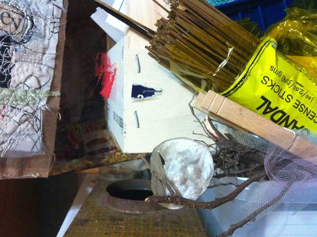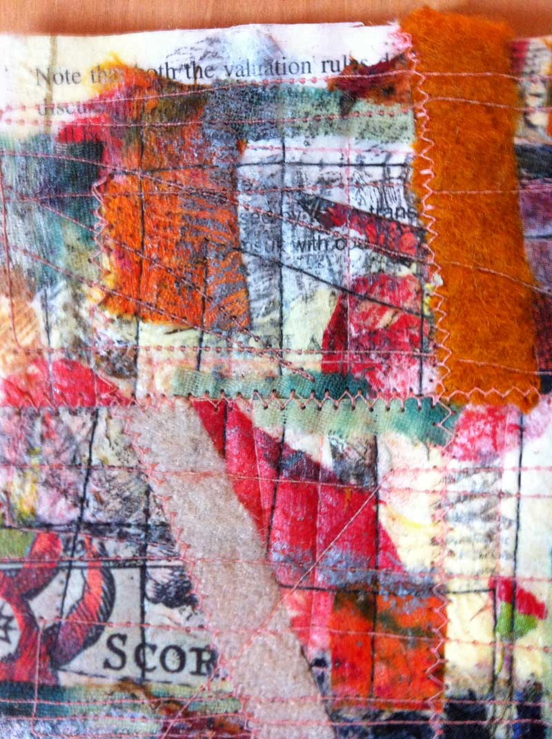 Experimenting, again, with gesso, drawing on top of gesso, scraping away, cutting up bits, moving, rearranging, stitching inbetween most steps.