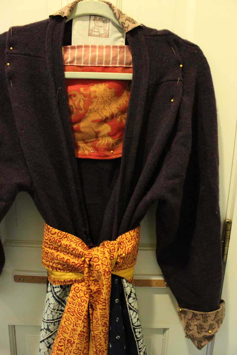I plan to add thin red ties, so that the ‘waistlit’ as it has been dubbed by deanna, will wrap twice and tie in front, but with narrower ties.
