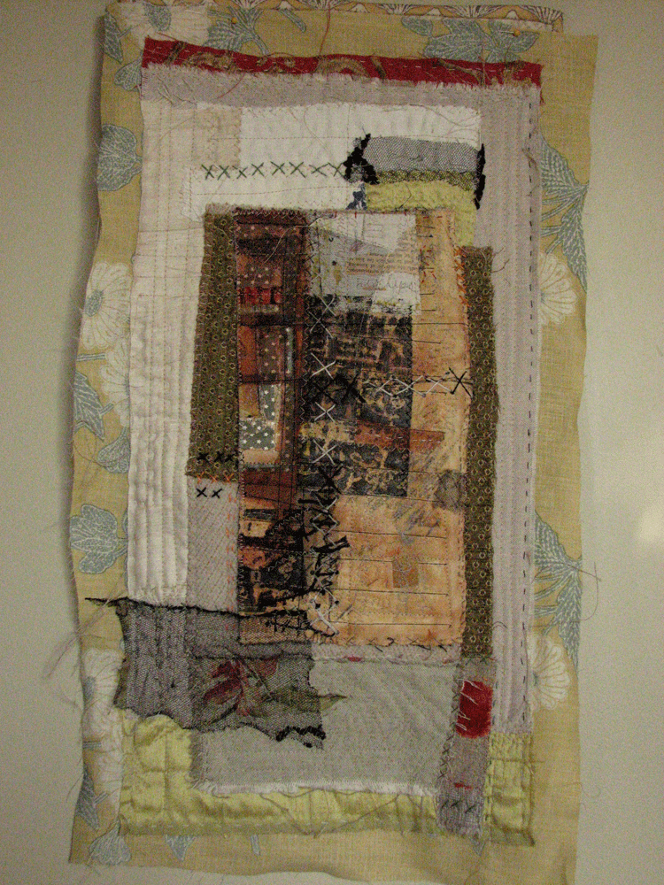 A gessoed surface is not the most fun for poking a needle through, but the thing I will be careful not to do again, is to machine stitch right up to the edge of a piece with batting, because then it is tough to tuck the white under.